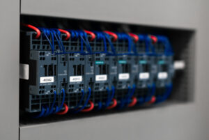 Close-up view of industrial controls at factory.